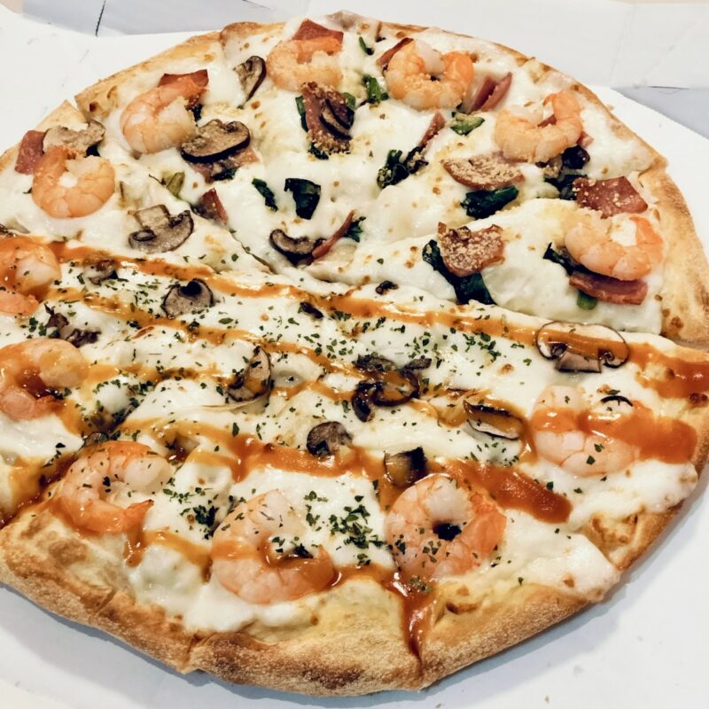 同じ「海老ピザ」でも、チーズ系とビスク系で味わいがはっきり分かれているので、食べる側にとって飽きが来にくく、味の変化を楽しみながら一枚完食できる構成になっています。